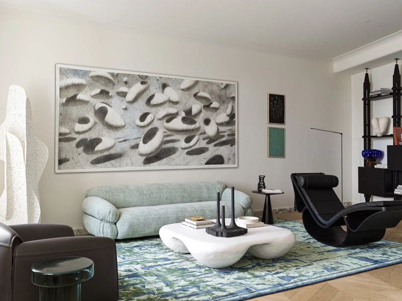 Арт-ковры можно добавлять в разные зоны, однако выигрышнее всего они будут смотреться в более «общественных» пространствах гостиных. Хотя это не строгое правило: спальня, например, тоже может превратиться в эксклюзивную арт-галерею, доступ к коллекциям которой есть у крайне ограниченного круга лиц.