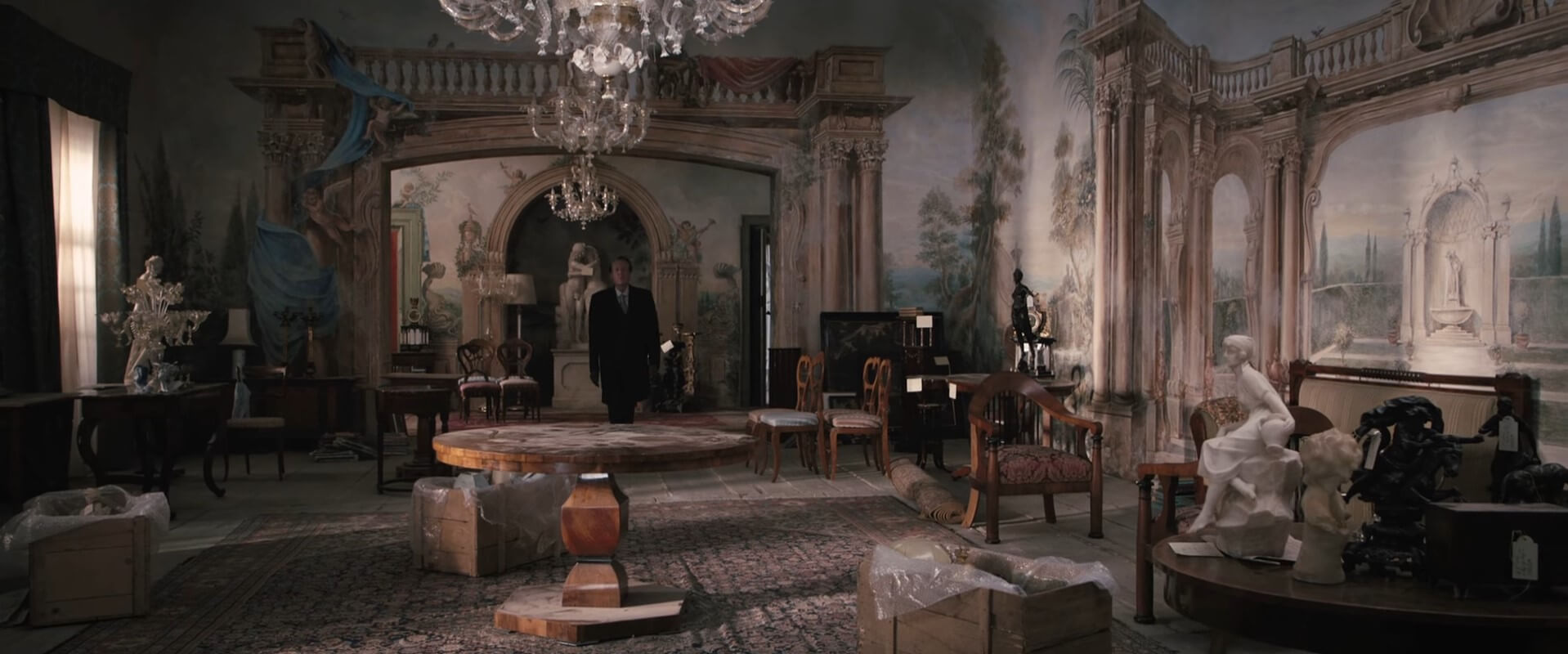 Тот случай, когда искусство — не только заглавная тема фильма, но и ключевой ориентир при оформлении. Неважно, идет ли речь о личной квартире главного героя, Вирджила Олдмена, или о заброшенном особняке, в котором кроется множество винтажных сокровищ. Стены, полы и потолки везде говорят про искусство. И неотъемлемой частью этого искусства становятся ковры.