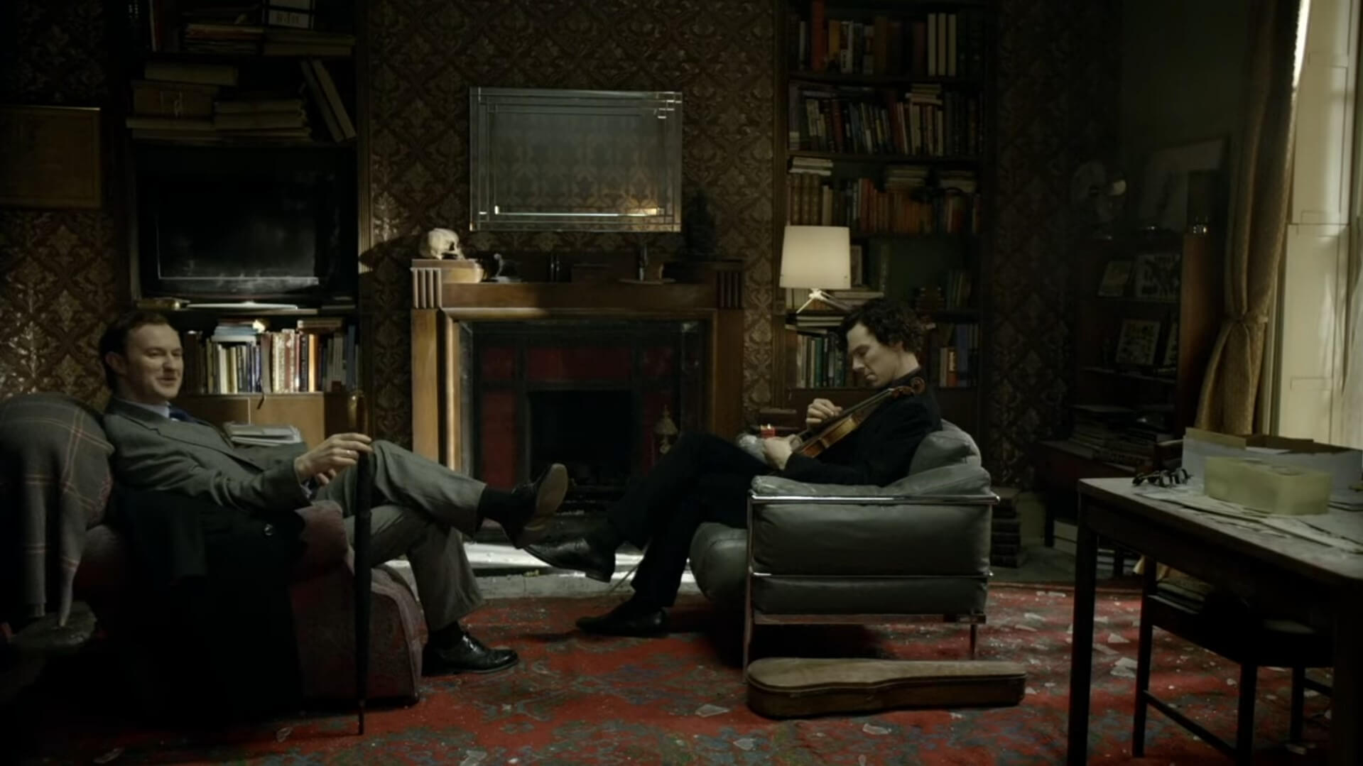 Ковер в центре комнаты, где живет и работает Шерлок Холмс, — наглядный пример акцента, который одновременно притягивает к себе внимание и выступает основой, объединяя расположенные вокруг предметы.