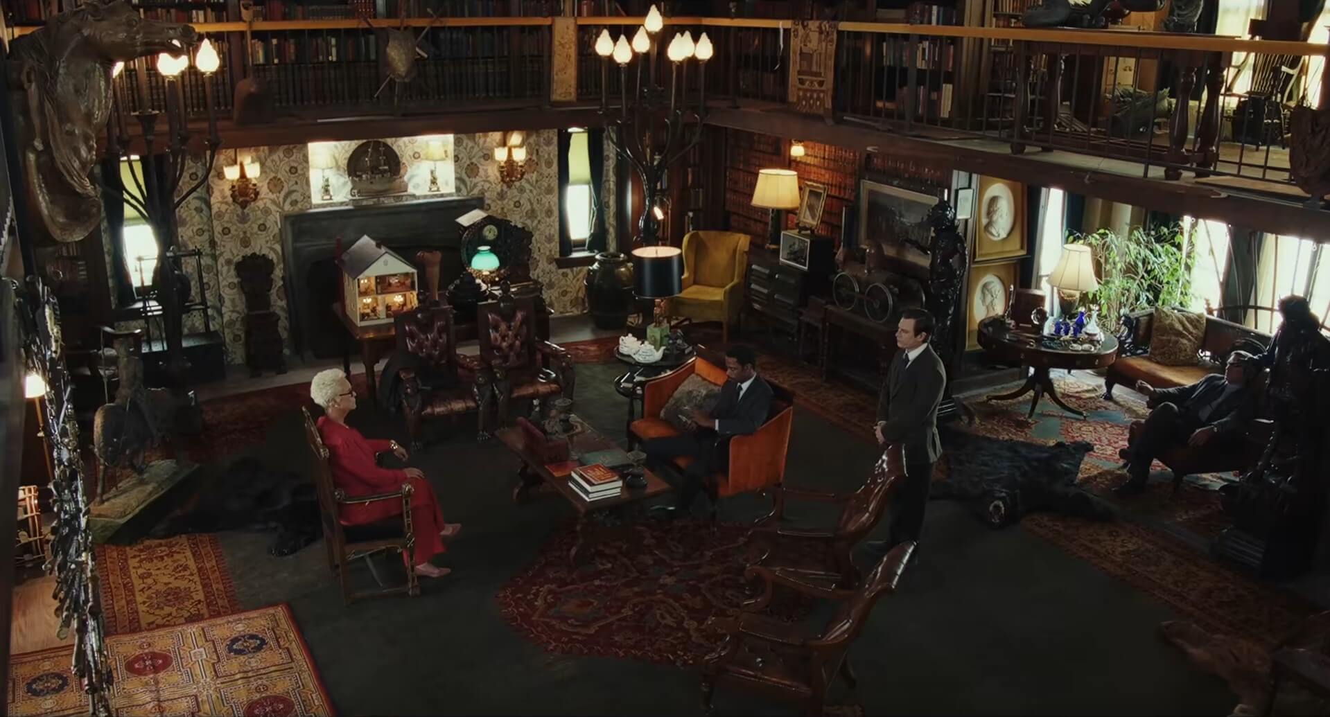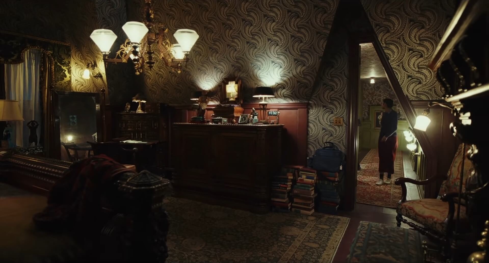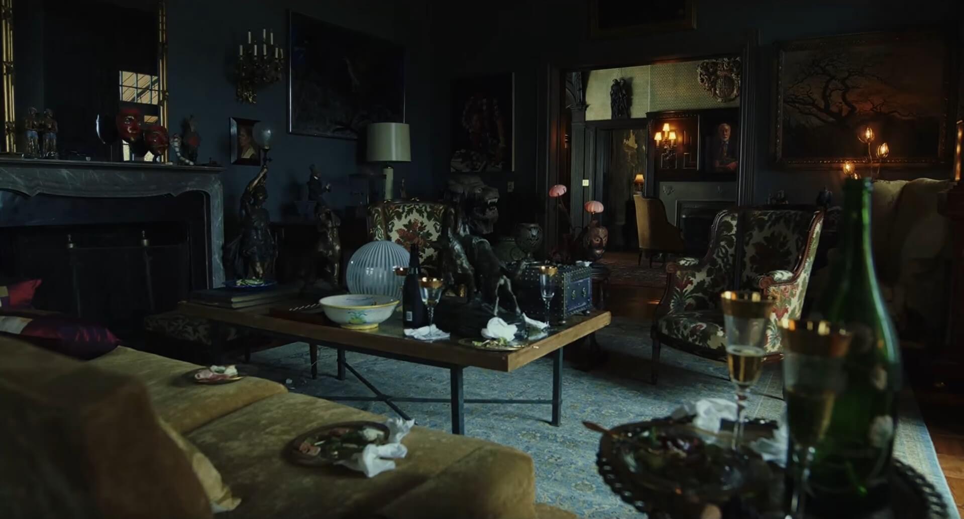 Обратите внимание, как смело декораторы фильма играют с многочисленными богатыми узорами на разных поверхностях — начиная с обоев и мебели, заканчивая дорогими винтажными коврами, которых насчитывается по несколько штук в каждом помещении.