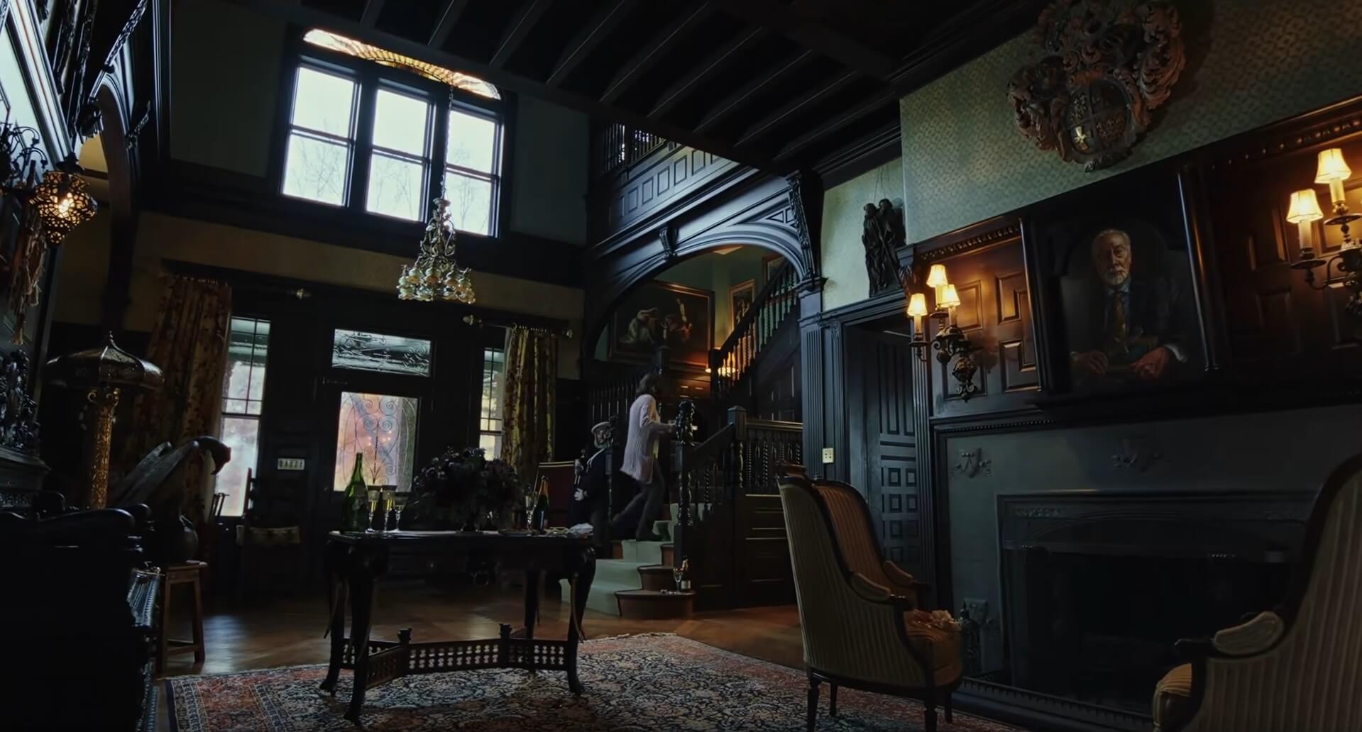 В гостиной Вирджила Олдмена это современные светлые варианты с тактильно контрастным геометрическим рисунком. В особняке — классические винтажные ковры, которые дополняют атмосферу тихой торжественности и места с историей, пускай и немного затертого временем.