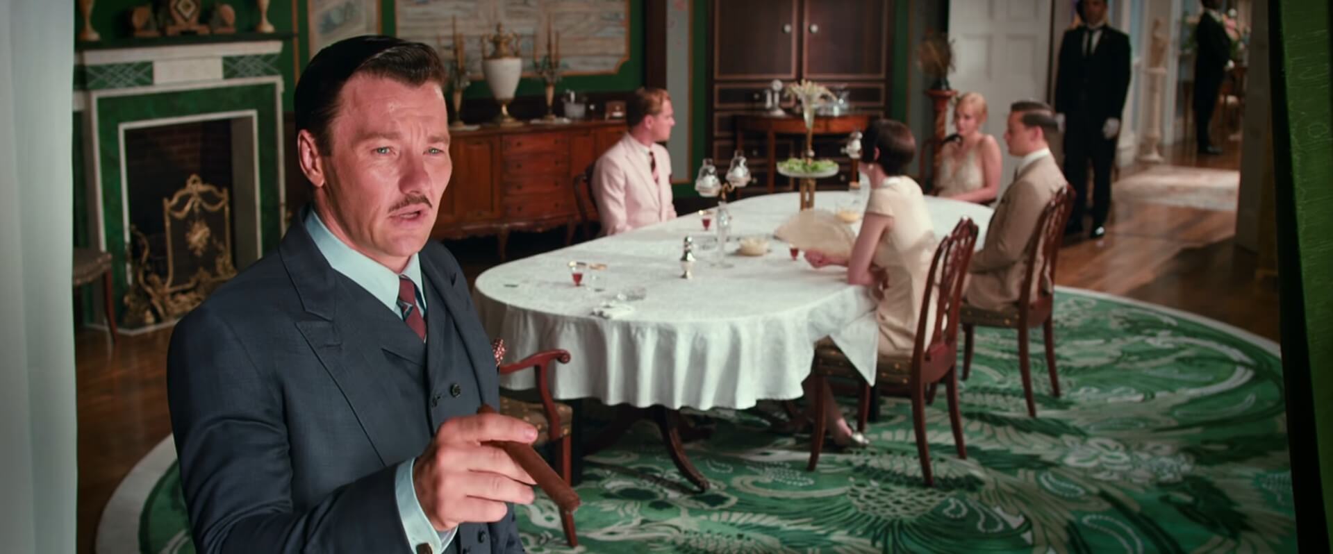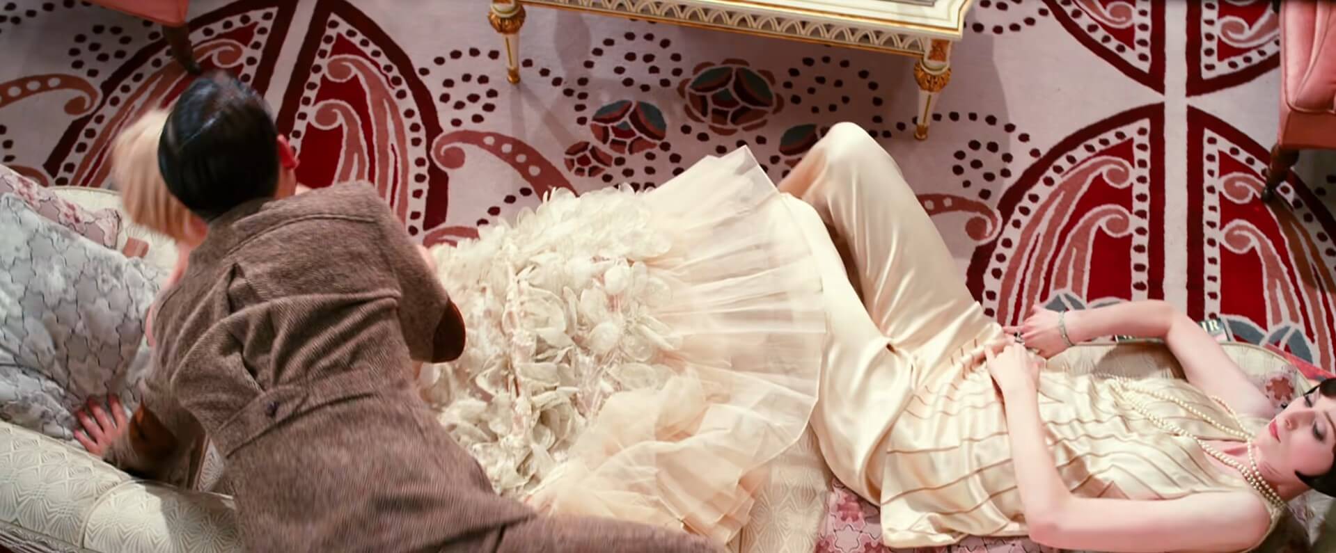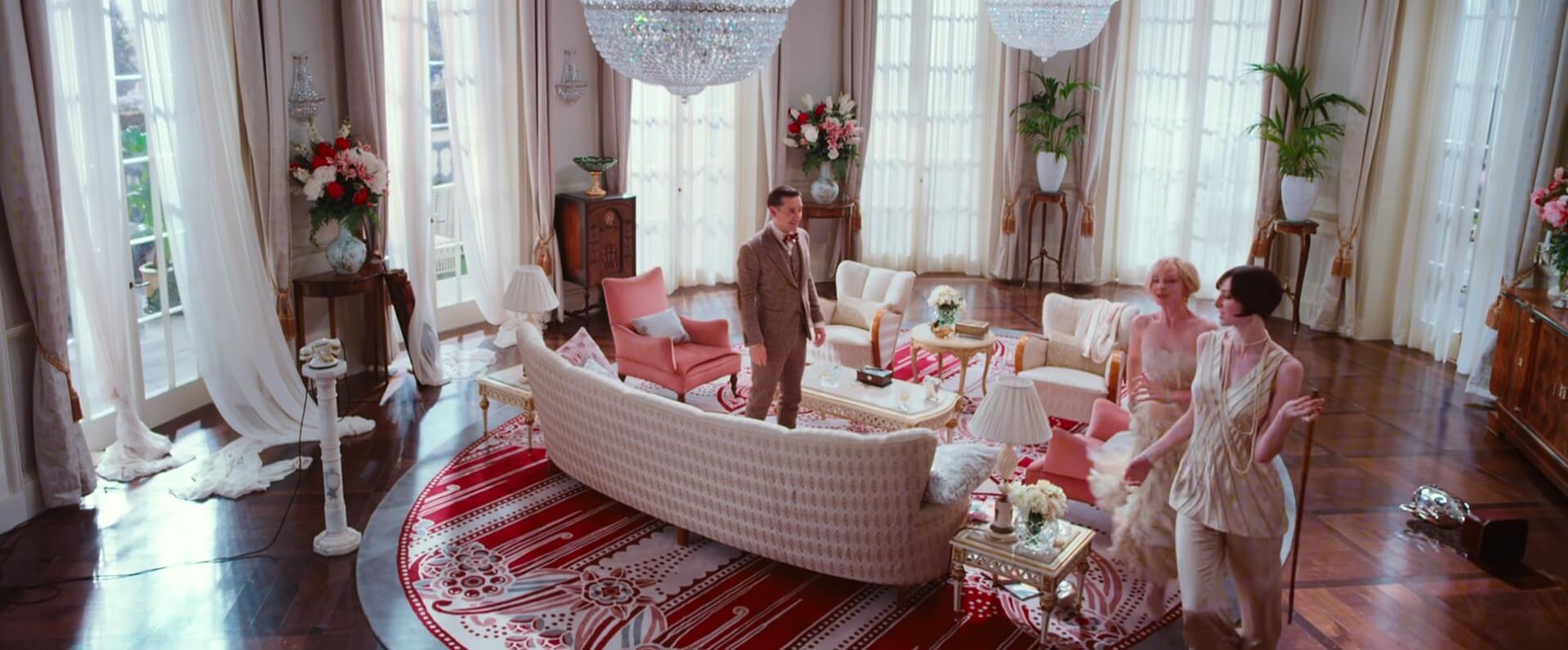 Этот фильм — одна большая ода стилю ар-деко и ревущим двадцатым: начиная с роскошных интерьеров и заканчивая образом жизни. Предметы той эпохи были продуманы до мелочей. Узоры, цвета, сочетания форм и материалов — вместе они превращали в искусство любую деталь: от карманного зеркальца до лампы. Разумеется, коврам было уделено не меньше внимания.