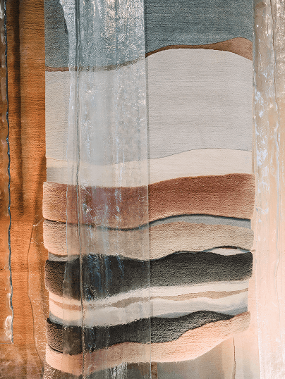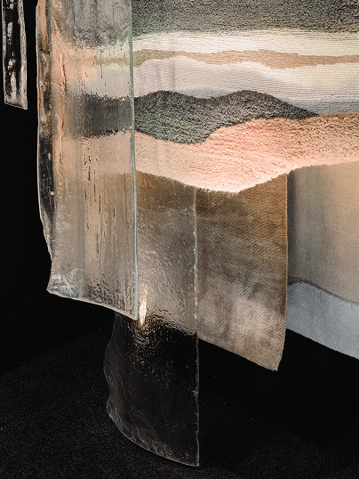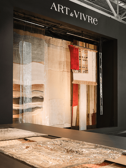 Art de Vivre выступил с театрализованным решением главной темы выставки, где зритель занял позицию наблюдателя за диалогом ковровых и стеклянных фактурных кулис.